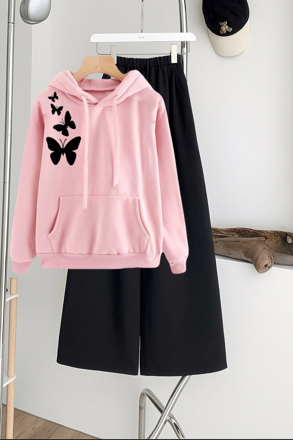 Pack of 2 butterfly pink hoodie with Black Flapper Trouser